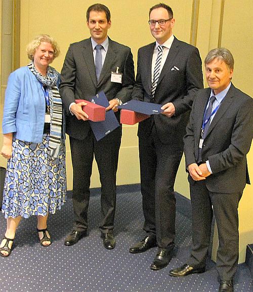 v.l.n.r. Prof. A. Eggert (GPOH-Vorsitzende/ Berlin), Dr. Kristian Pajtler (Preisträger/ Heidelberg), Dr. Pascal Johann (Preisträger/ Heidelberg), Prof. U. Kontny (Aachen). Es fehlt die Preisträgerin Dr. Serap Erkek (Heidelberg).