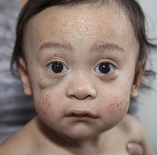 Blutungsneigung beim Wiskott-Aldrich-Syndrom: Petechien und Hämatome Foto: Kinderklinik der LMU München